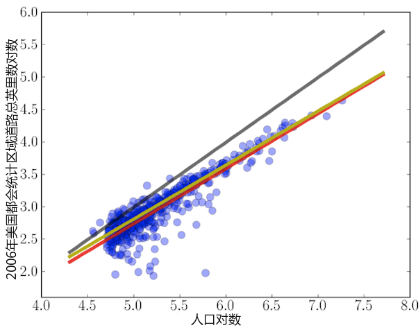 他們使用大量數(shù)據(jù),與同僚系統(tǒng)構(gòu)建起一個(gè)城市可量化特征的體系:道路網(wǎng)絡(luò)的長(zhǎng)度、居民的平均收入、人均專(zhuān)利數(shù)量。正如埃米莉•巴杰(Emily Badger)去年所說(shuō),貝騰科特與韋斯特比較了城市人口增長(zhǎng)與這些特征之間的聯(lián)系,考察基礎(chǔ)設(shè)施如何增長(zhǎng)、社會(huì)經(jīng)濟(jì)產(chǎn)出與社會(huì)互動(dòng)如何相關(guān)、人口密度發(fā)展如何減少社會(huì)互動(dòng)的能源消耗。