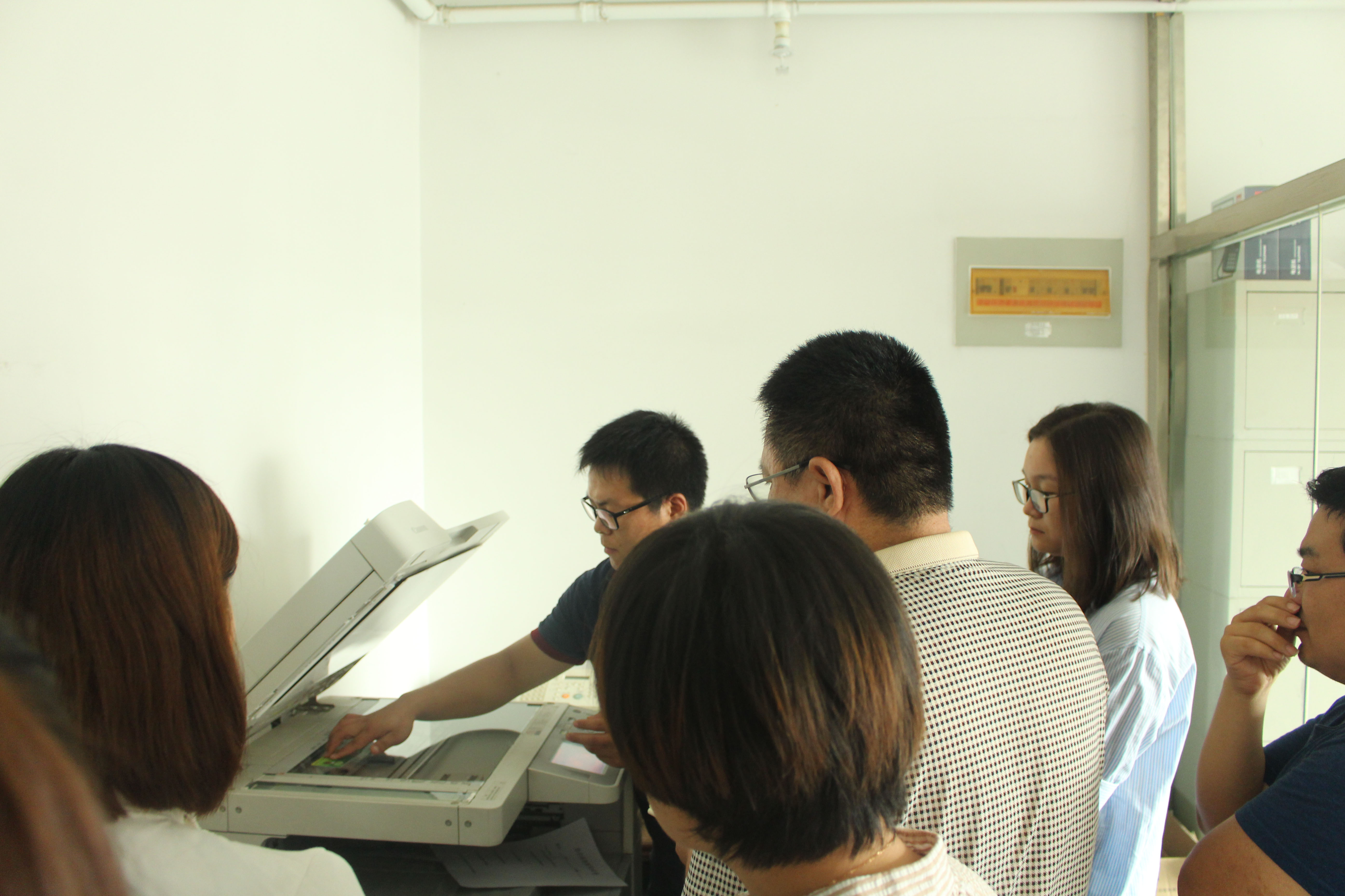 魏老師從Office辦公軟件(復印機、打印機、掃描儀)基礎應用及使用技巧兩個方面進行講解,詳細介紹了公司打/復印機的結構及工作原理,打/復印機的使用方法及日常維護等方面。培訓后,對員工進行考核打分。