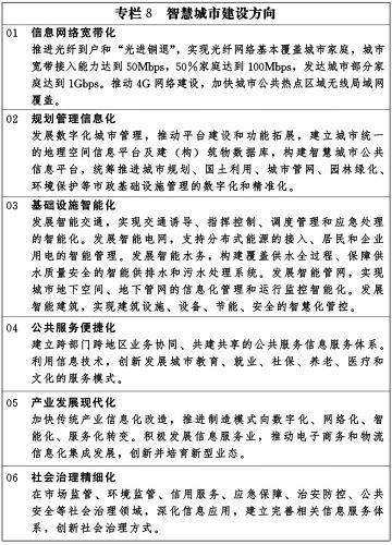 統(tǒng)籌城市發(fā)展的物質(zhì)資源、信息資源和智力資源利用,推動物聯(lián)網(wǎng)、云計算、大數(shù)據(jù)等新一代信息技術(shù)創(chuàng)新應(yīng)用,實現(xiàn)與城市經(jīng)濟(jì)社會發(fā)展深度融合。強(qiáng)化信息網(wǎng)絡(luò)、數(shù)據(jù)中心等信息基礎(chǔ)設(shè)施建設(shè)。促進(jìn)跨部門、跨行業(yè)、跨地區(qū)的政務(wù)信息共享和業(yè)務(wù)協(xié)同,強(qiáng)化信息資源社會化開發(fā)利用,推廣智慧化信息應(yīng)用和新型信息服務(wù),促進(jìn)城市規(guī)劃管理信息化、基礎(chǔ)設(shè)施智能化、公共服務(wù)便捷化、產(chǎn)業(yè)發(fā)展現(xiàn)代化、社會治理精細(xì)化。增強(qiáng)城市要害信息系統(tǒng)和關(guān)鍵信息資源的安全保障能力。
