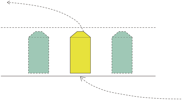 平行式停車車身方向與通道平行,是路邊停車帶或狹長(zhǎng)地段停車的常用形式,如下圖所示。