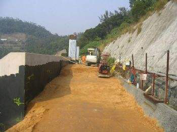 土質邊坡防護的坡度宜在1:1.0~1:2.0之間;巖石邊坡防護的邊坡坡度宜緩于1:0.3。近些年來,隨著對環境保護的重視,高等級公路的邊坡多采用種草防護。現大多采用草坪植生帶,即將草籽、肥料和土均勻的拌合裹于土工物內,當草籽發芽長成草起到固土作用后,無紡布纖維自然腐爛,無污染,效果很好。