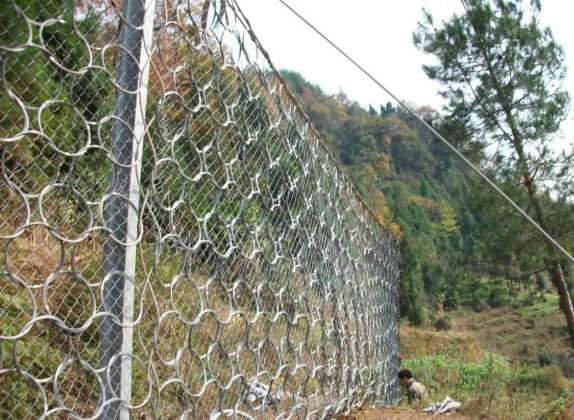 被動防護(hù)系統(tǒng)是將以鋼絲繩網(wǎng)為主的柵欄式柔性攔石網(wǎng)設(shè)置于斜坡上相應(yīng)位置,用于攔截斜面坡上的滾落石以避免其破壞保護(hù)的對象。它對崩塌落石發(fā)生區(qū)域集中、頻率較高或坡面施工作業(yè)難度較大的高陡邊坡是一種非常有效而經(jīng)濟(jì)的方法。它與主動防護(hù)系統(tǒng)相比的主要優(yōu)點在于清理工作十分簡便或無需清理。