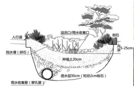 第三是“滯”,主要作用是延緩短時間內(nèi)形成的雨水徑流量。比如說,通過微地形調(diào)節(jié),讓雨水慢慢地匯集到一個地方,用時間換空間。我們城市內(nèi)的降雨,是按分鐘計、按小時計的,這跟大江大河不一樣。城市內(nèi)短歷時強降雨,對下墊面產(chǎn)生沖擊,形成快速徑流,積水?dāng)€起來就導(dǎo)致內(nèi)澇。因此,“滯”非常重要,可以延緩形成徑流的高峰。