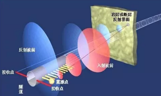 利用地震波在不均勻地質體中產生的反射波特性來預報隧洞掌子面前方及周圍臨近區(qū)域的地質情況,可以檢測出掌子面前方巖性的變化,可以在鉆爆法或TBM開挖的隧道中使用,而不必接近掌子面。該法有效預報距離100~200m。