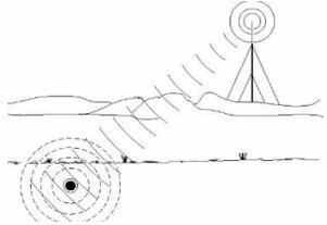 2 甚低頻法: 利用超長(zhǎng)波電臺(tái)發(fā)射電磁波為場(chǎng)源,通過(guò)地下探測(cè)場(chǎng)參數(shù)變化來(lái)定位。