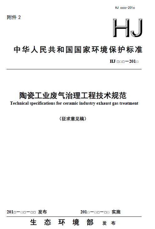 為貫徹《中華人民共和國環境保護法》和《中華人民共和國大氣污染防治法》等法律法規,防治環境污染,改善大氣環境質量,規范陶瓷工業廢氣治理工程的建設與運行管理,我部決定制定《陶瓷工業廢氣治理工程技術規范》。