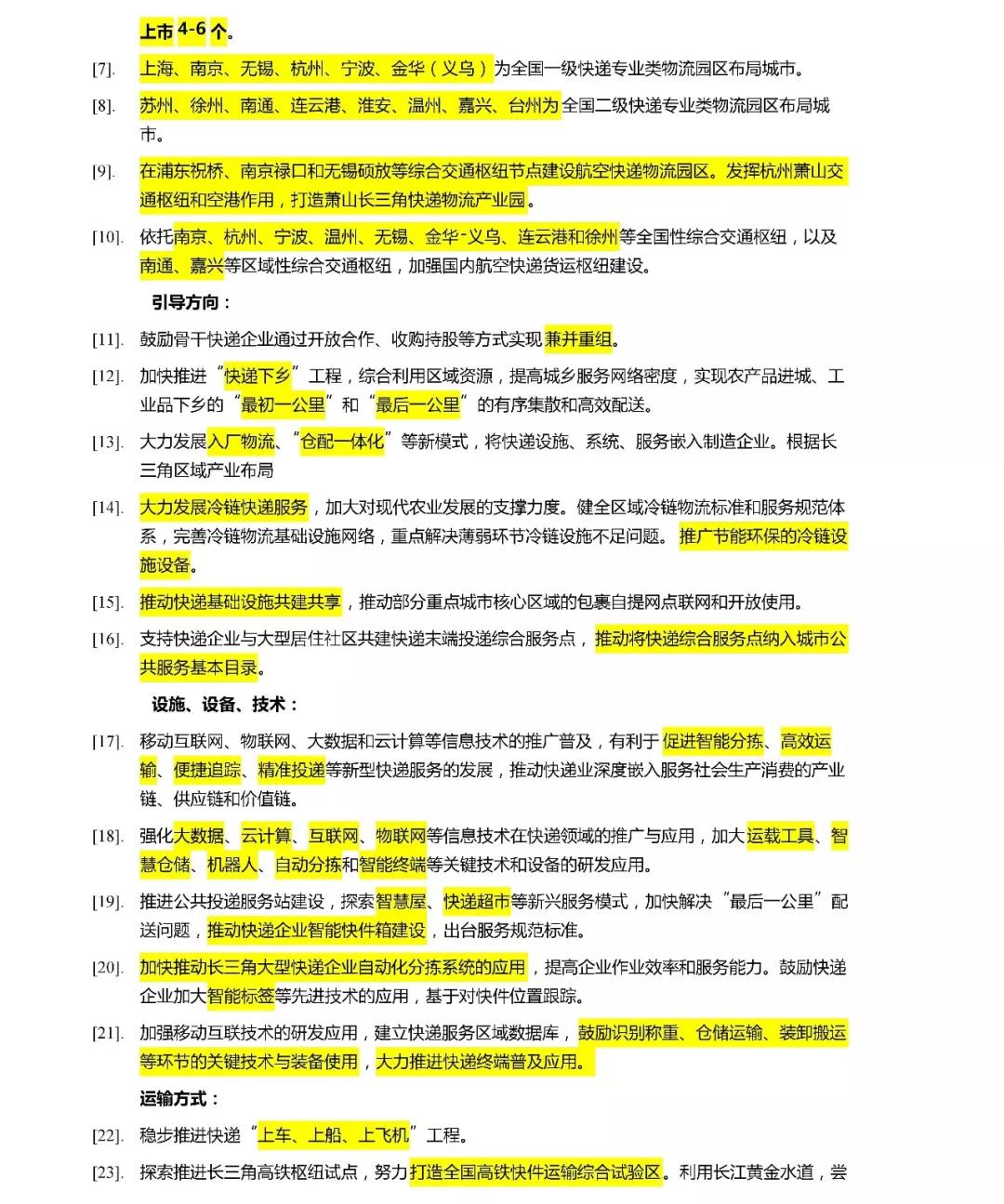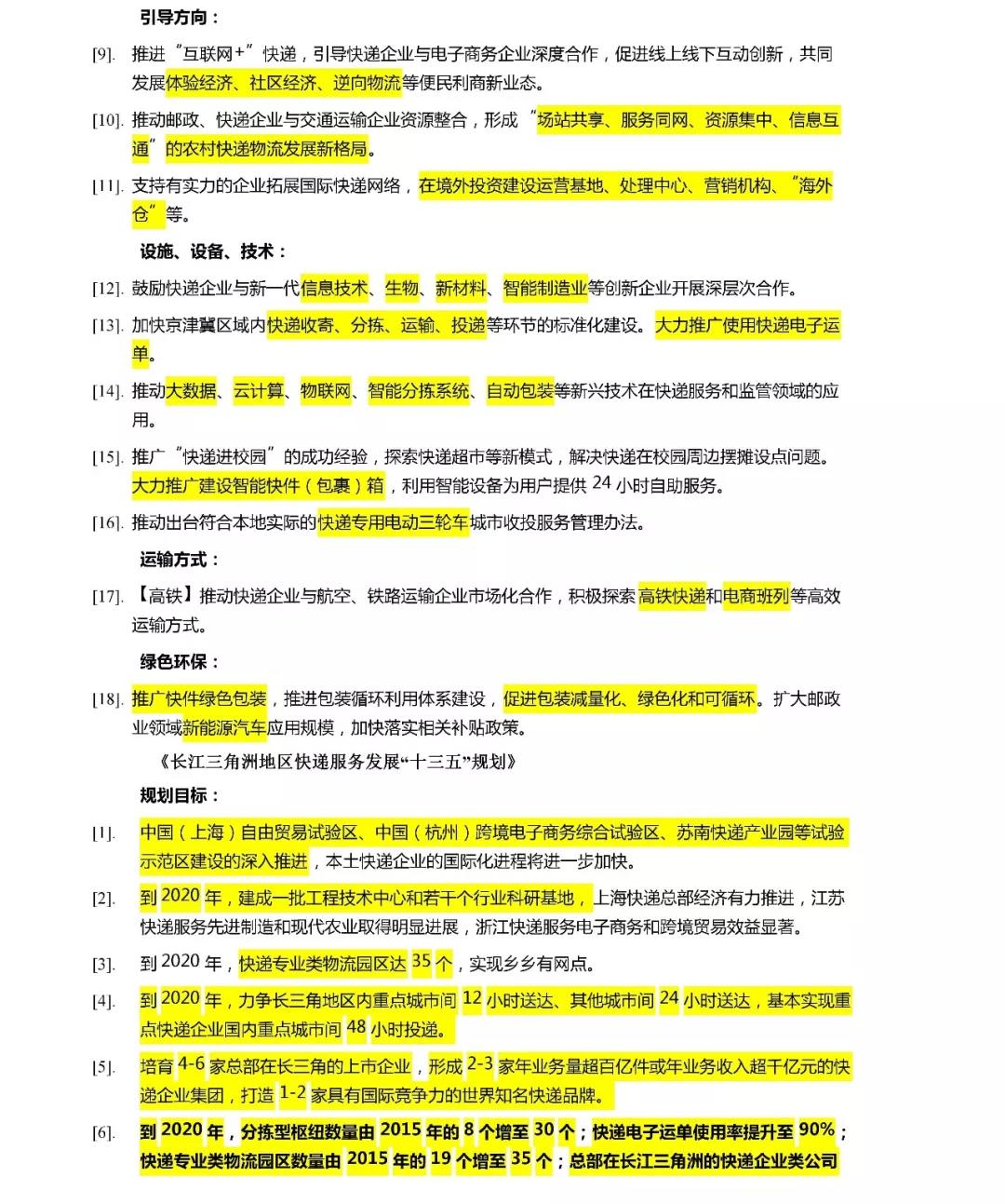 (4)到2020年,長三角地區(qū),分揀型樞紐數量由2015年的8個增至30個;快遞電子運單使用率提升至90%;快遞專業(yè)類物流園區(qū)數量由2015年的19個增至35個。