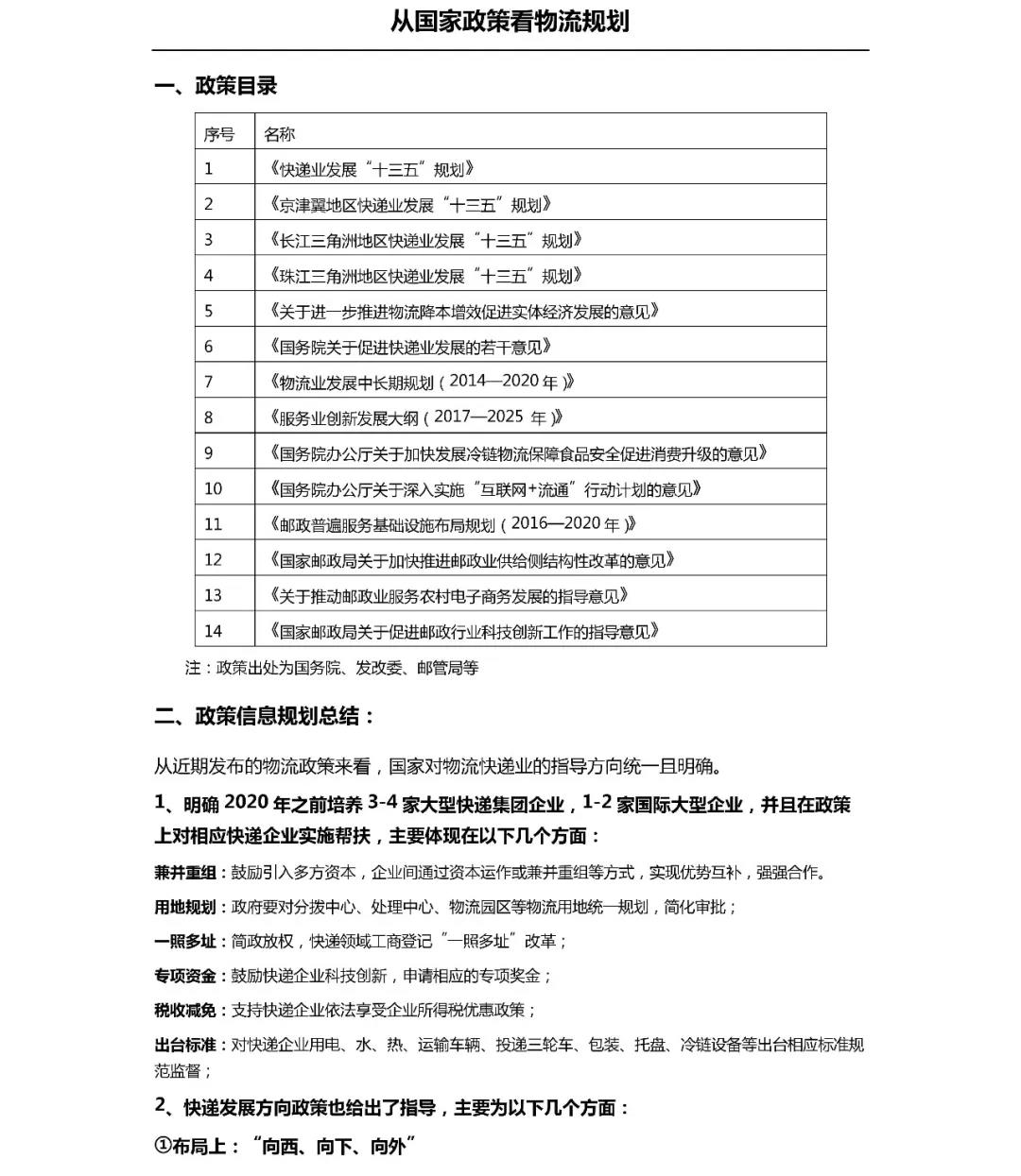 從近期發(fā)布的物流政策來看,國家對物流快遞業(yè)的指導方向統一且明確。
