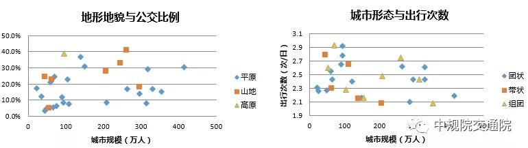 研究發(fā)現(xiàn),除了城市規(guī)模,城市之間的差異體現(xiàn)在許多方面,如城市地理環(huán)境、空間形態(tài)、城市職能、區(qū)位等,這些差異都或多或少地帶來交通特征的差異。尤其是改革開放以來,各城市發(fā)展的速度差異導(dǎo)致發(fā)展階段的差異。城市間的差異直接帶來經(jīng)濟水平、存量地區(qū)規(guī)模、機動車擁有、交通設(shè)施水平等的分化,導(dǎo)致不同的出行特征,包括出行距離分布、交通結(jié)構(gòu)、出行目的、時間分布等。這種差異性不僅體現(xiàn)在城市之間,還體現(xiàn)在城市內(nèi)部不同功能、強度、發(fā)展階段的地區(qū)之間。
