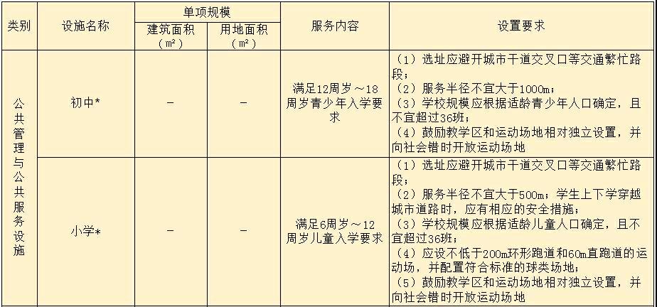 注:加*的配套設施,其建筑面積與用地面積規模應滿足國家相關規劃標準有關規定。