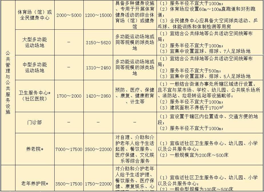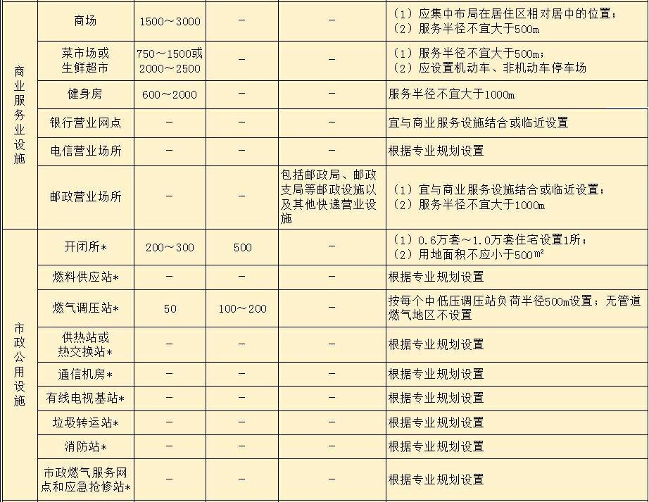 注:1 加*的配套設施,其建筑面積與用地面積規模應滿足國家相關規劃及標準規范的有關規定;