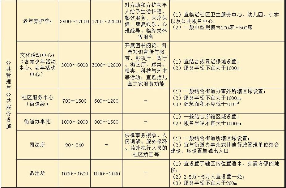 注:1 加*的配套設施,其建筑面積與用地面積規模應滿足國家相關規劃和建設標準的有關規定;