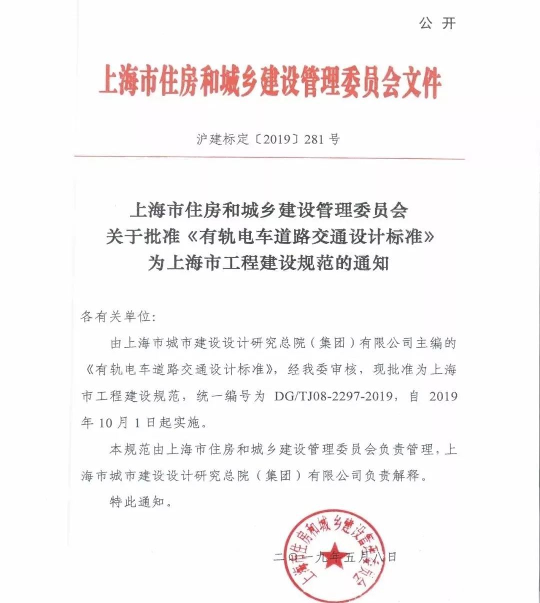 近日,上海市工程建設(shè)規(guī)范《有軌電車道路交通設(shè)計標(biāo)準(zhǔn)》DG/TJ08-2297-2019(以下簡稱“標(biāo)準(zhǔn)”)發(fā)布。標(biāo)準(zhǔn)由上海市城市建設(shè)設(shè)計研究總院主編,于2019年10月1日正式實施。