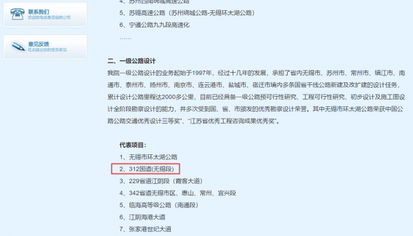 經(jīng)濟(jì)觀察網(wǎng)記者注意到,另外一家上市公司中設(shè)股份(002883.SZ)的官網(wǎng)信息顯示,在該公司的一級(jí)公路設(shè)計(jì)代表項(xiàng)目中,312國(guó)道(無(wú)錫段)赫然在列。