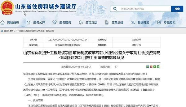 山東:社會(huì)投資低風(fēng)險(xiǎn)建設(shè)項(xiàng)目施工圖審查,9月1日起取消!