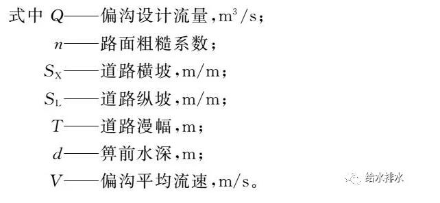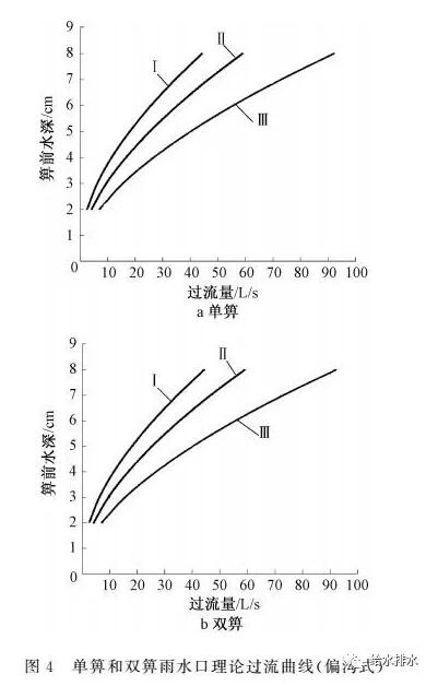 雨水口泄水能力計(jì)算安裝在單方向縱坡坡段上的偏溝式雨水口的泄水能力,按式(4)~ 式(9)計(jì)算:
