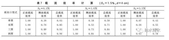 (2)單方向縱坡坡段的雨水口,增加其數(shù)量將提高雨水口正面攔截速度和側(cè)面截流效率,但對雨水口總截流效率提升作用有限,而我國標(biāo)準(zhǔn)圖集推薦泄水能力隨箅子數(shù)量增加而快速增加(見表7)。