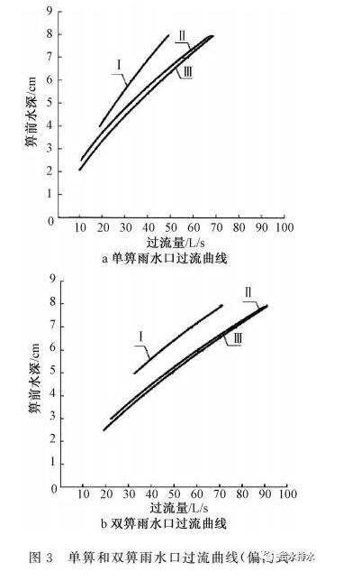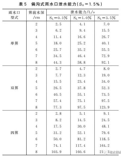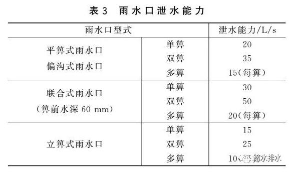 國家標(biāo)準(zhǔn)圖集《雨水口》(16S518)提供了一個在一定水力條件下(道路縱坡0.3%~3.5%,橫坡1.5%,箅前水深40 mm)通過1∶1的水工模型經(jīng)過試驗(yàn)確定的不同型式雨水口泄水能力,如表3所示。