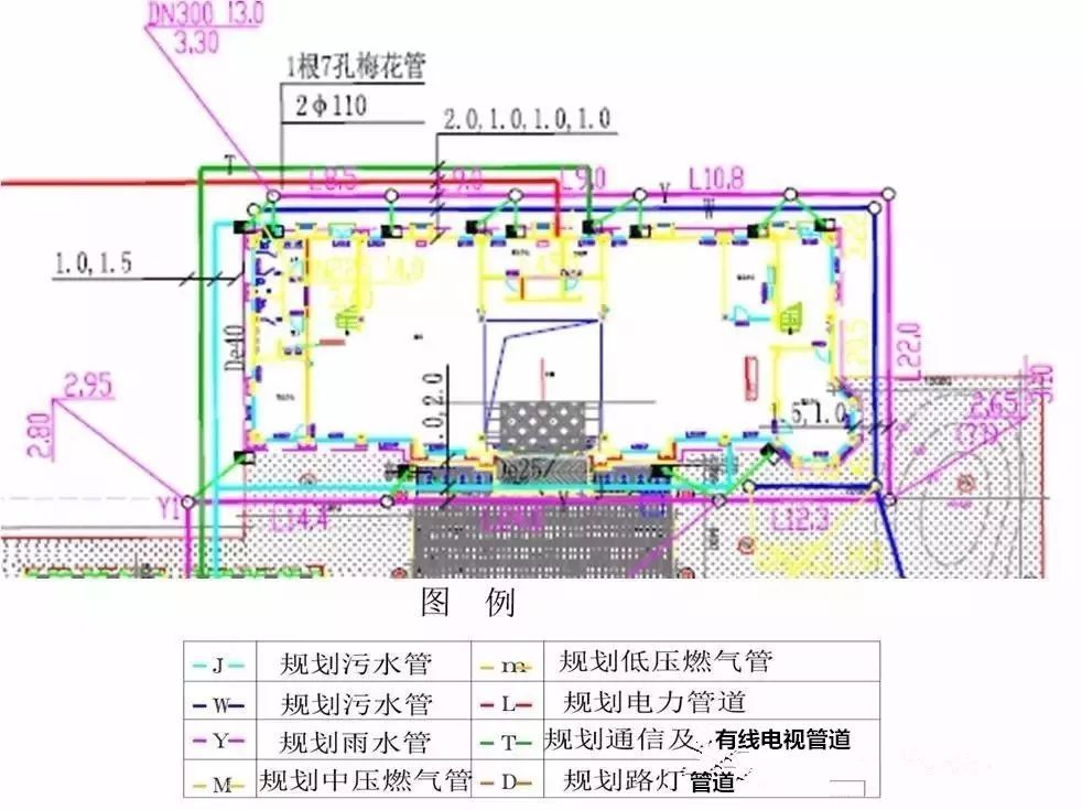 首先應考慮室外正負零標高為黃海高層的高度,考慮項目場地回土覆土高度,項目周邊路面標高,項目建成后邊界外的小區環路標高,查看這3個標高之間的關系,搞清楚周邊市政管網的布置及標高,根據施工現場實際情況進行室外管網的綜合布置。