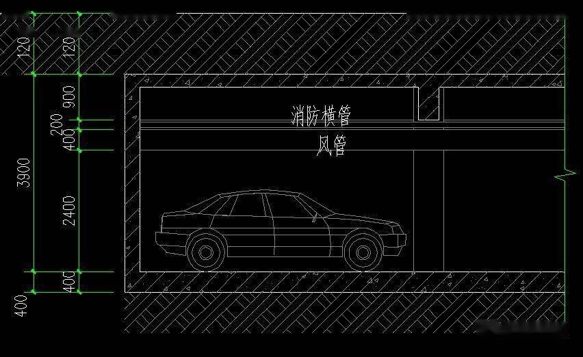 柱網:柱網按7800~8400x(2a+b)/2布置。以橫向停3輛車為例,垂直行車道方向柱(2a+b)/2,其中:a為停車位深度,b為行車道寬度。