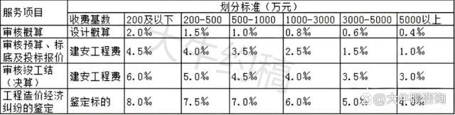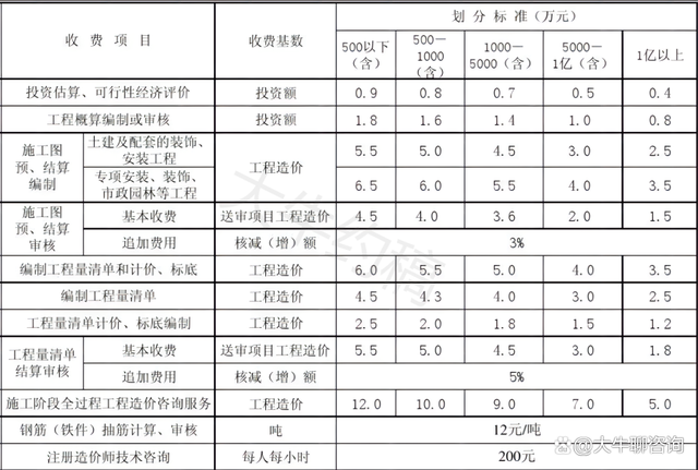 4.工程造價咨詢服務收費按照本標準計算收費,低于每項3000元的按3000收取,超出3000元時按本標準收取;