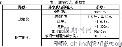 路基的地面排水主要是采取設置貫通全線的邊溝來進行的,邊溝的設計參數如下表1所示。