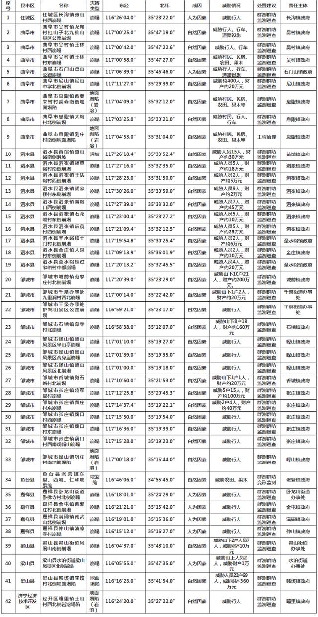 附件:濟寧市地質災害隱患點情況表
