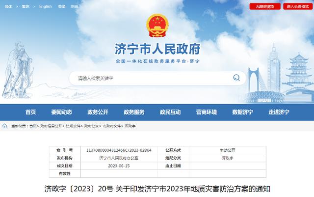 山東省濟寧市2023年地質災害防治方案公布
