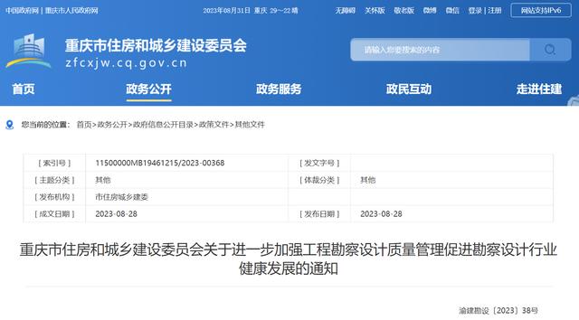 通知顯示,近年來,重慶市工程勘察設計質量水平穩步提升,為建設工程質量安全提供了重要保障。但是仍存在惡意低價競爭、企業管理制度不規范、合理周期和費用得不到有效保證、勘察設計數據和文件涉嫌造假、未嚴格執行工程建設強制性標準等問題。為進一步加強工程勘察設計質量監管,規范勘察設計市場秩序,現將有關事項通知如下:
