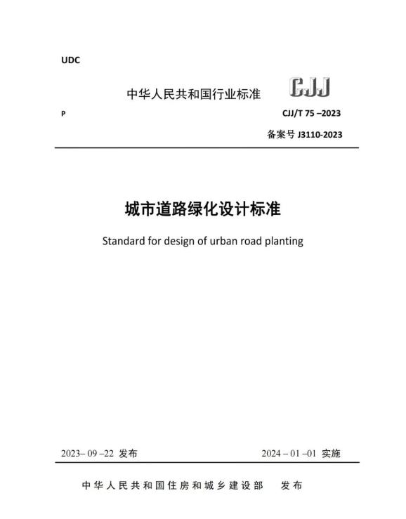 近日,住房和城鄉(xiāng)建設部批準和正式公布了由中國城市規(guī)劃設計研究院主持修編的行業(yè)標準《城市道路綠化設計標準》(編號CJJ/T75-2023),該標準將于2024年1月1日實施。