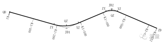 在《道路工程制圖標準》中規(guī)定,道路中心線應采用細點劃線表示,路基邊緣線應該采用粗實線表示。由于公路路線平面圖所采用的比例太小,公路的寬度無法按實際尺寸畫出,所以在路線平面圖中,設計路線是用粗實線沿著道路中心表示的。