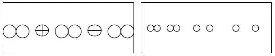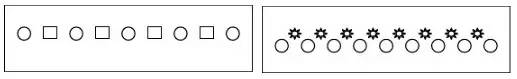 比如,盆花放置時利用變葉木和散尾葵兩種質地、顏色、高度等完全不相近的盆栽間隔擺放,形成既有分割空間作用還不至于隔斷空間、增強通透性的效果,還能打破一種盆栽的單調、呆板的氛圍。圖2表示間隔韻律。左圖表示中間間隔另一種不同的植物,結合連續韻律表現。右圖表示同種植物間間隔不同的植物并且間隔距離漸變,形成間隔韻律,結合漸變韻律共同表現。