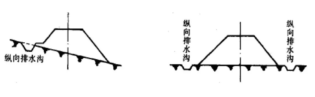 通過修建和維護地面排水系統(tǒng),可將地面水迅速的排出路基范圍,從而避免由于地面積水下滲和流動沖刷而造成的路基病害。地面排水系統(tǒng)對于細(xì)粒土填料的路基影響尤其明顯;粗粒土填筑的路基如級配不適宜時,也會出現(xiàn)相應(yīng)病害。