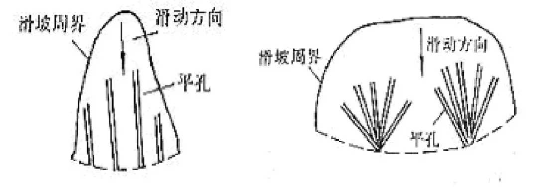 為排除路基土體或滑坡體中的地下水,可使用仰斜度為10°~15°的排水平孔。依據(jù)水文地質(zhì)條件,平孔可平行排列或扇形排列布置。