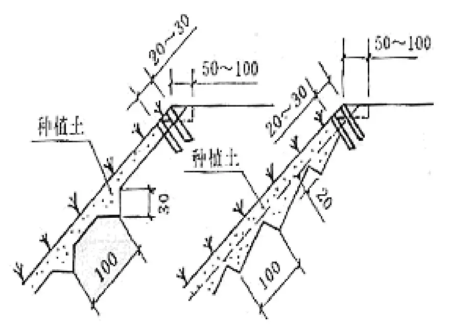 植草是一種施工簡單、造價經(jīng)濟的有效坡面防護方法,適用于草類生長的土質(zhì)路堤和路塹邊坡,一般要求邊坡坡度緩于1:1.25時,容許地表水流速0.4~0.6m/s,單級坡高在6.0m以內(nèi)。種草時將草籽加土拌和,均勻播種在表土適當(dāng)翻松的坡面上,必要時坡面加鋪5~10cm的種植土層,以有利種草成活和生長。