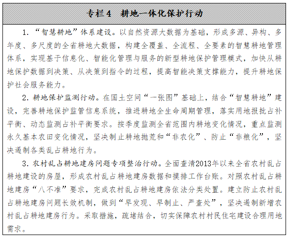 編制實施省市縣三級耕地保護(hù)國土空間專項規(guī)劃,根據(jù)建設(shè)占用計劃落實占補(bǔ)平衡指標(biāo),并依托村莊規(guī)劃層層傳導(dǎo)和落實耕地保護(hù)責(zé)任。開展耕地后備資源調(diào)查評價,在嚴(yán)格保護(hù)生態(tài)前提下,統(tǒng)籌協(xié)調(diào)退耕還林還草和耕地開發(fā),科學(xué)劃定宜耕后備資源范圍。完善永久基本農(nóng)田及儲備區(qū)劃定成果,統(tǒng)籌永久基本農(nóng)田核實整改補(bǔ)足和城鎮(zhèn)開發(fā)邊界劃定工作,優(yōu)先劃定永久基本農(nóng)田,允許以“開天窗”的形式對城鎮(zhèn)開發(fā)邊界內(nèi)的永久基本農(nóng)田予以保留,對調(diào)出的現(xiàn)狀永久基本農(nóng)田中的非耕地、不穩(wěn)定利用耕地,在穩(wěn)定利用的耕地中補(bǔ)足。明確耕地利用優(yōu)先序,永久基本農(nóng)田重點(diǎn)用于發(fā)展糧食特別是水稻生產(chǎn),一般耕地主要用于糧食和油菜、蔬菜、棉花等農(nóng)產(chǎn)品生產(chǎn)及飼草飼料生產(chǎn)。耕地在優(yōu)先滿足糧食和食用農(nóng)產(chǎn)品生產(chǎn)基礎(chǔ)上,適度用于非食用農(nóng)產(chǎn)品生產(chǎn)并嚴(yán)格監(jiān)管。大力推進(jìn)全域土地綜合整治和高標(biāo)準(zhǔn)農(nóng)田建設(shè),確?!昂谩备財?shù)量穩(wěn)步上升,可長期穩(wěn)定利用耕地總量不再減少。依據(jù)專項規(guī)劃制定年度新增建設(shè)占用耕地和補(bǔ)充耕地計劃。